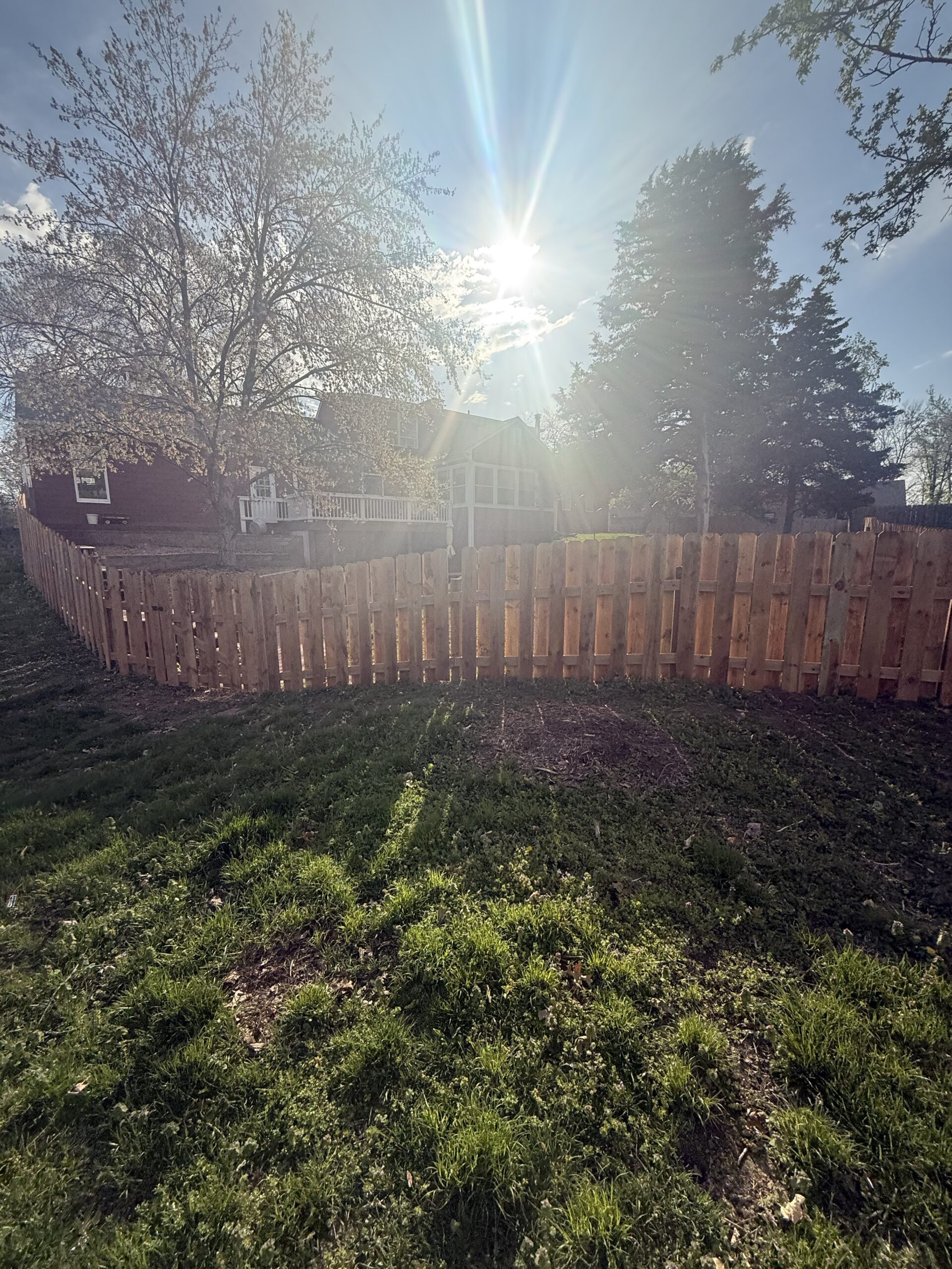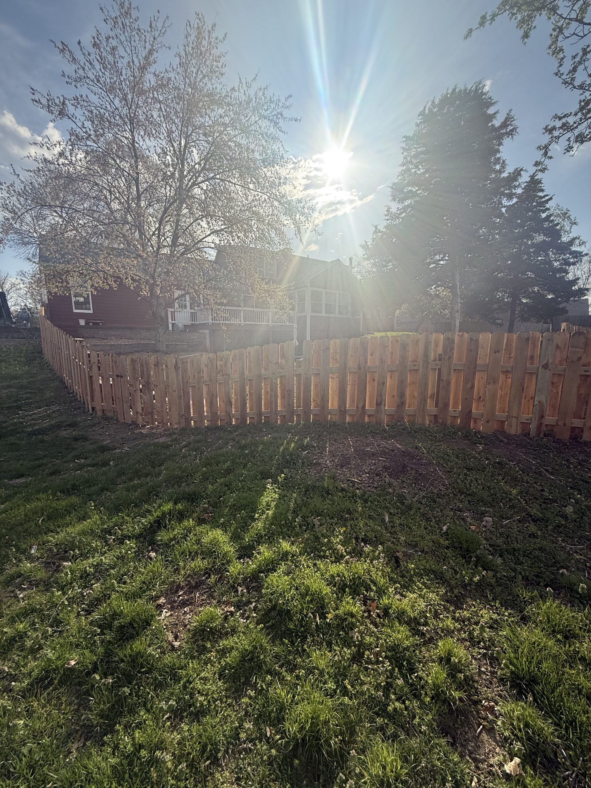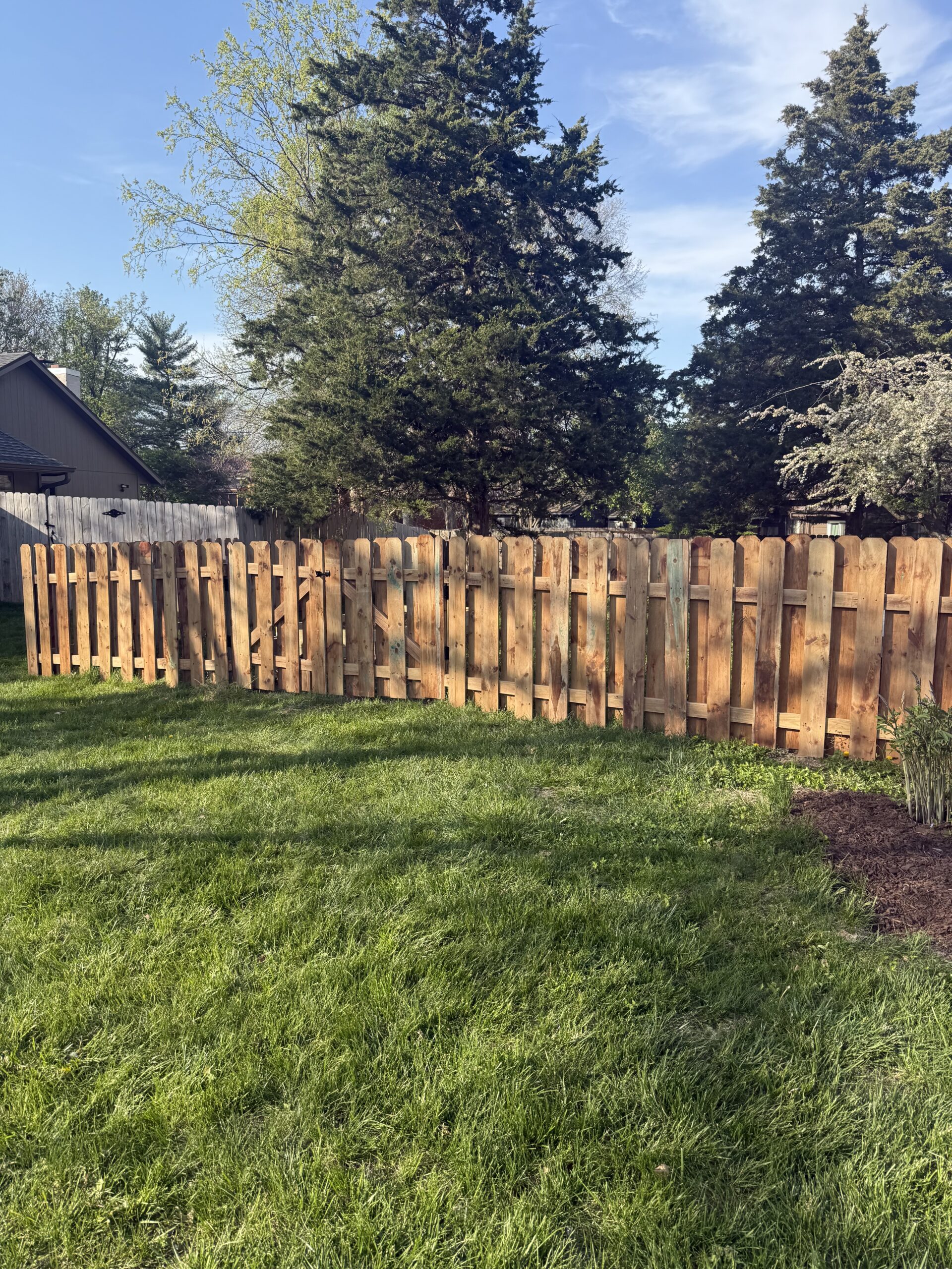 A client wanted a custom shadowbox fence around their backyard. Each board was custom cut to create a fence that flowed with the varying heights of landscape. The shadowbox style is great for added privacy but it’s also a visually attractive style.