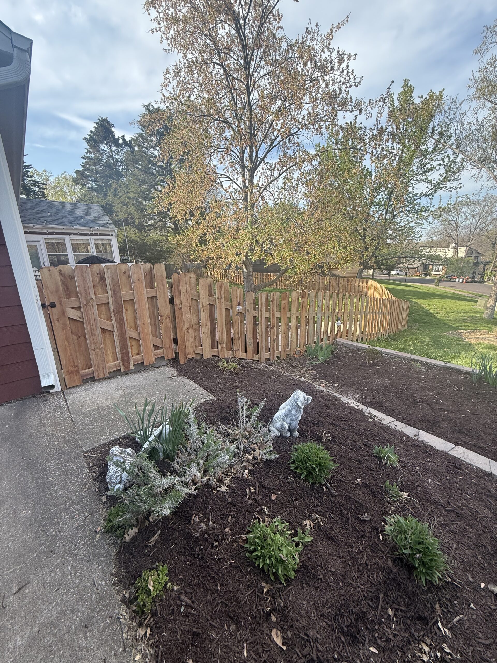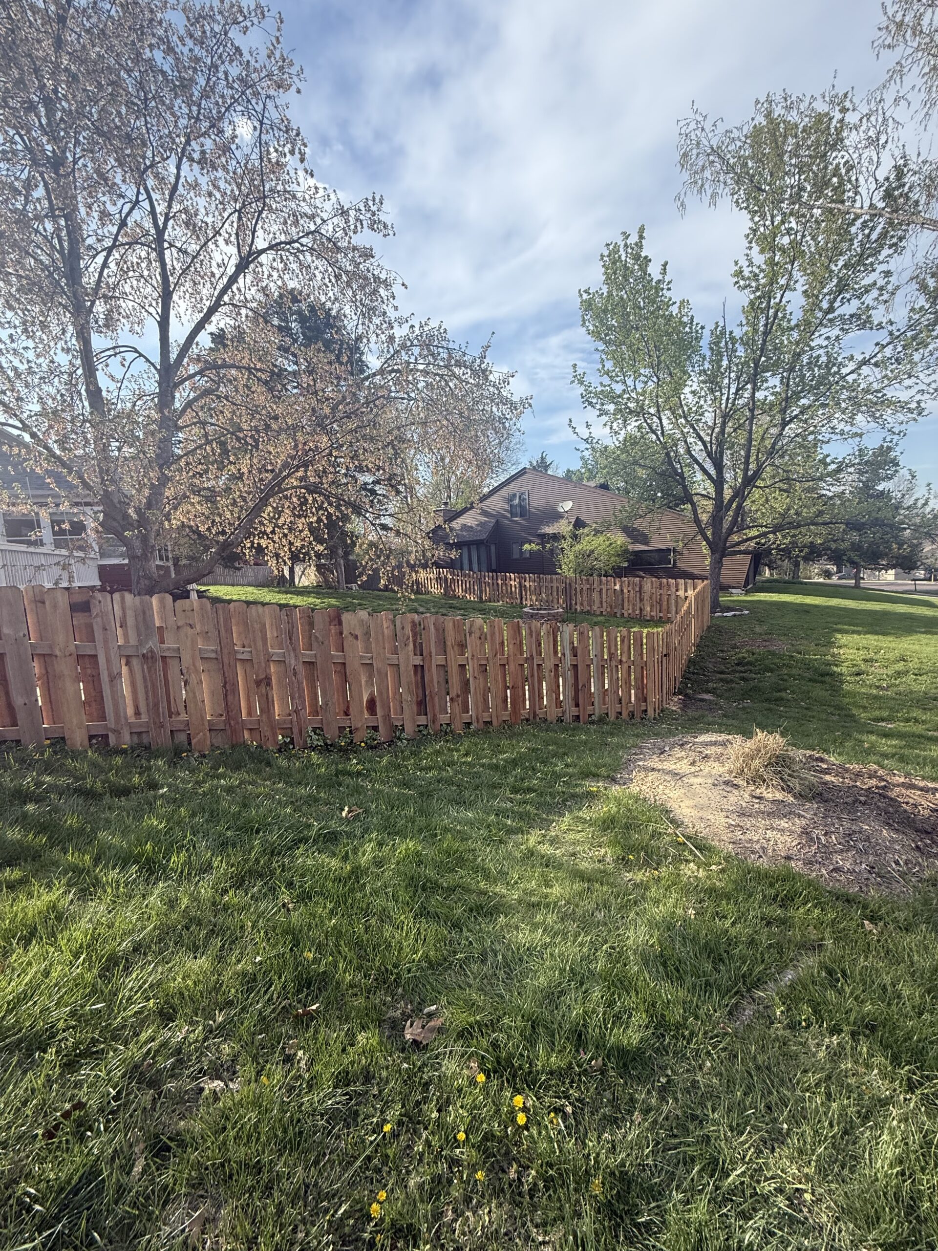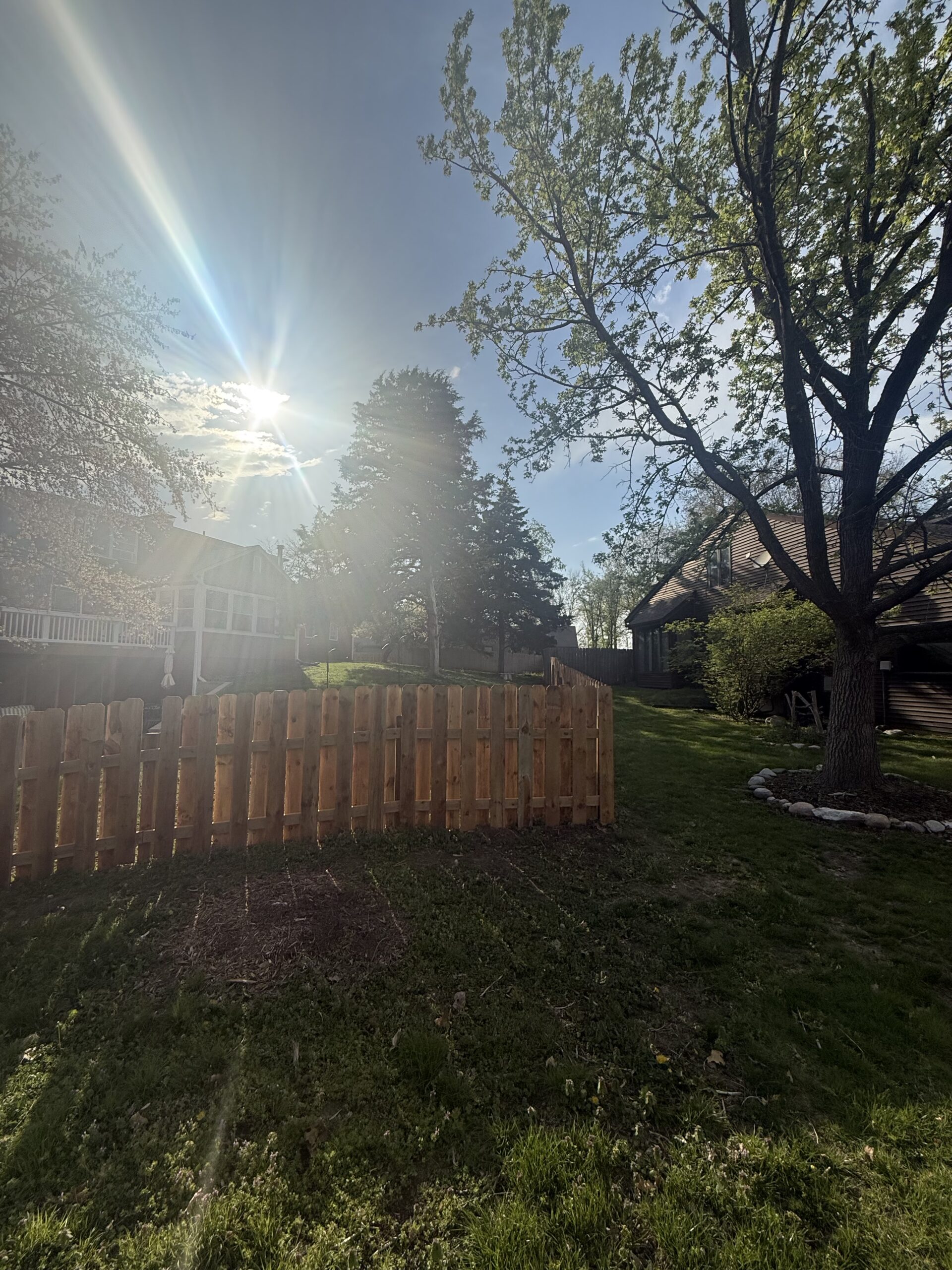 A client wanted a custom shadowbox fence around their backyard. Each board was custom cut to create a fence that flowed with the varying heights of landscape. The shadowbox style is great for added privacy but it’s also a visually attractive style.